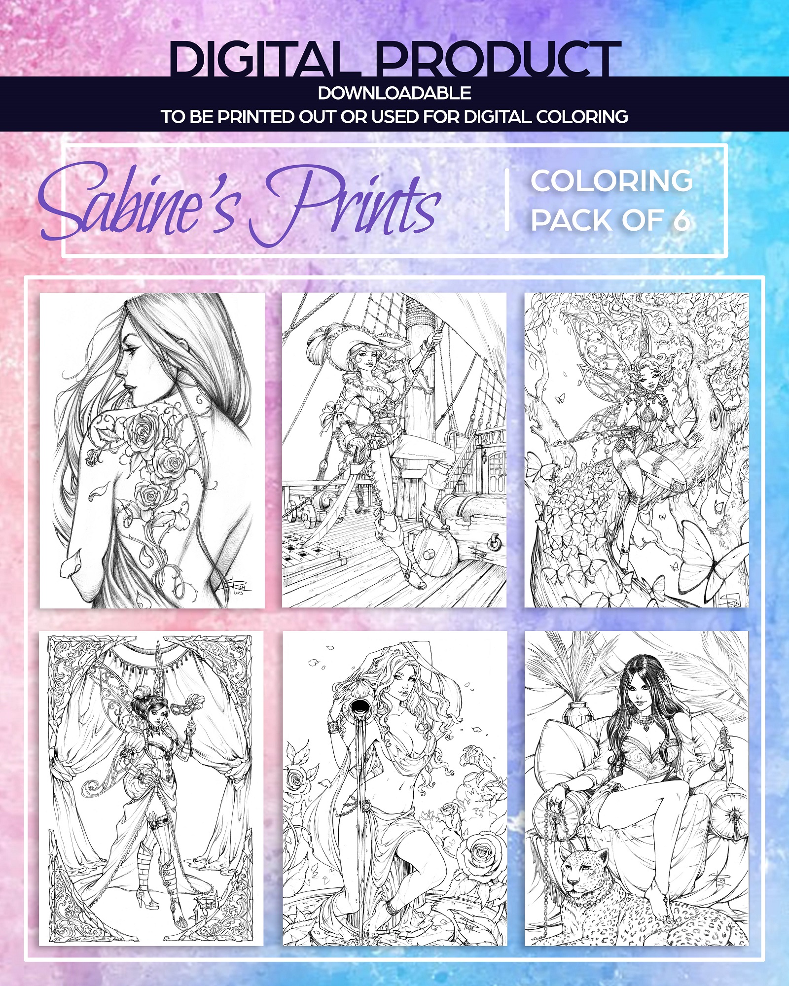 Sabine Prints Coloring Page Set - 6 Digital Files